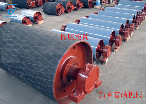 滾筒可以分為兩類:驅(qū)動(dòng)滾筒(頭滾筒)和改向滾筒(尾輪),驅(qū)動(dòng)輪傳遞動(dòng)力的主要部分。有兩種滾筒:表面光滑的和表面包橡膠的,橡膠表面可分為表面光滑的橡膠,橡膠人字表面和;菱形橡膠表面來滿足不同的技術(shù)要求。改向滾筒可分為光滑的橡膠表面和光滑表面。所有的滾筒采用兩種:鑄鐵和鑄鋼件,軸是由45 #鋼,外殼采用焊接組件。